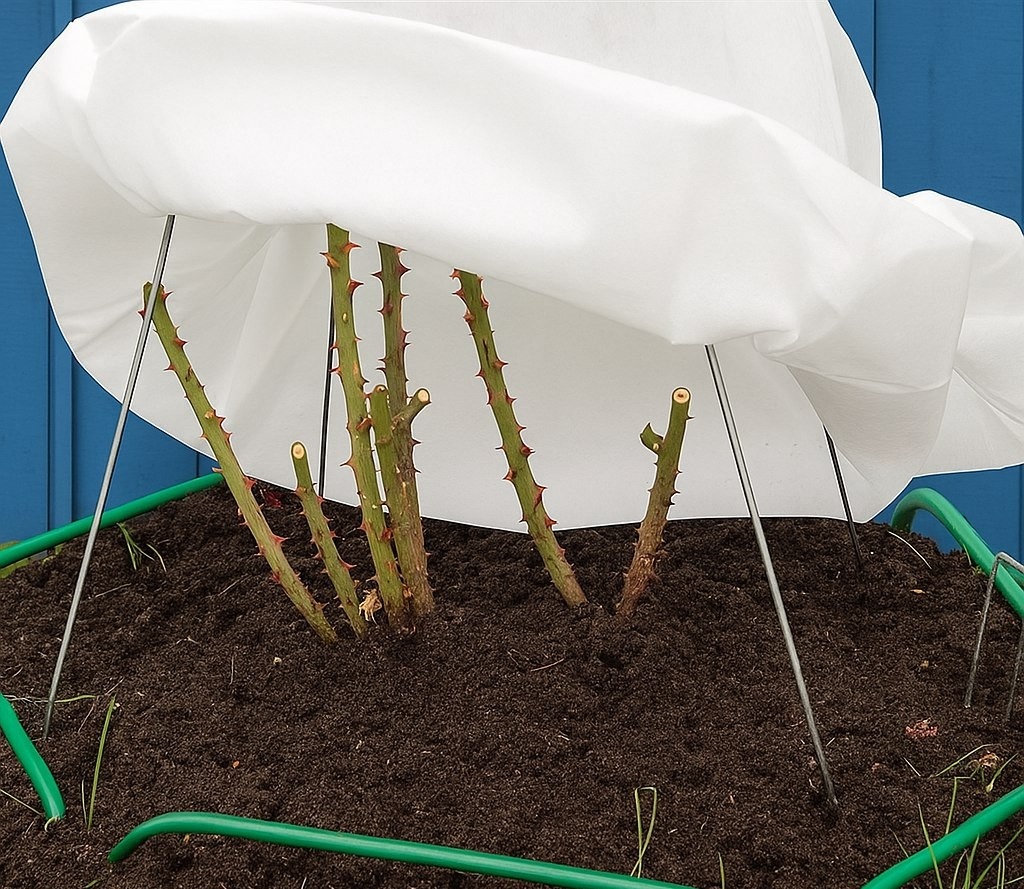 Сегодня подход изменился. Вокруг куста возводится каркас, на который накидывается нетканый укрывной материал. Главный секрет — оставлять воздушную прослойку между растением и укрытием. Именно такая прослойка, неподвижная и сухая, становится лучшей защитой от холода.