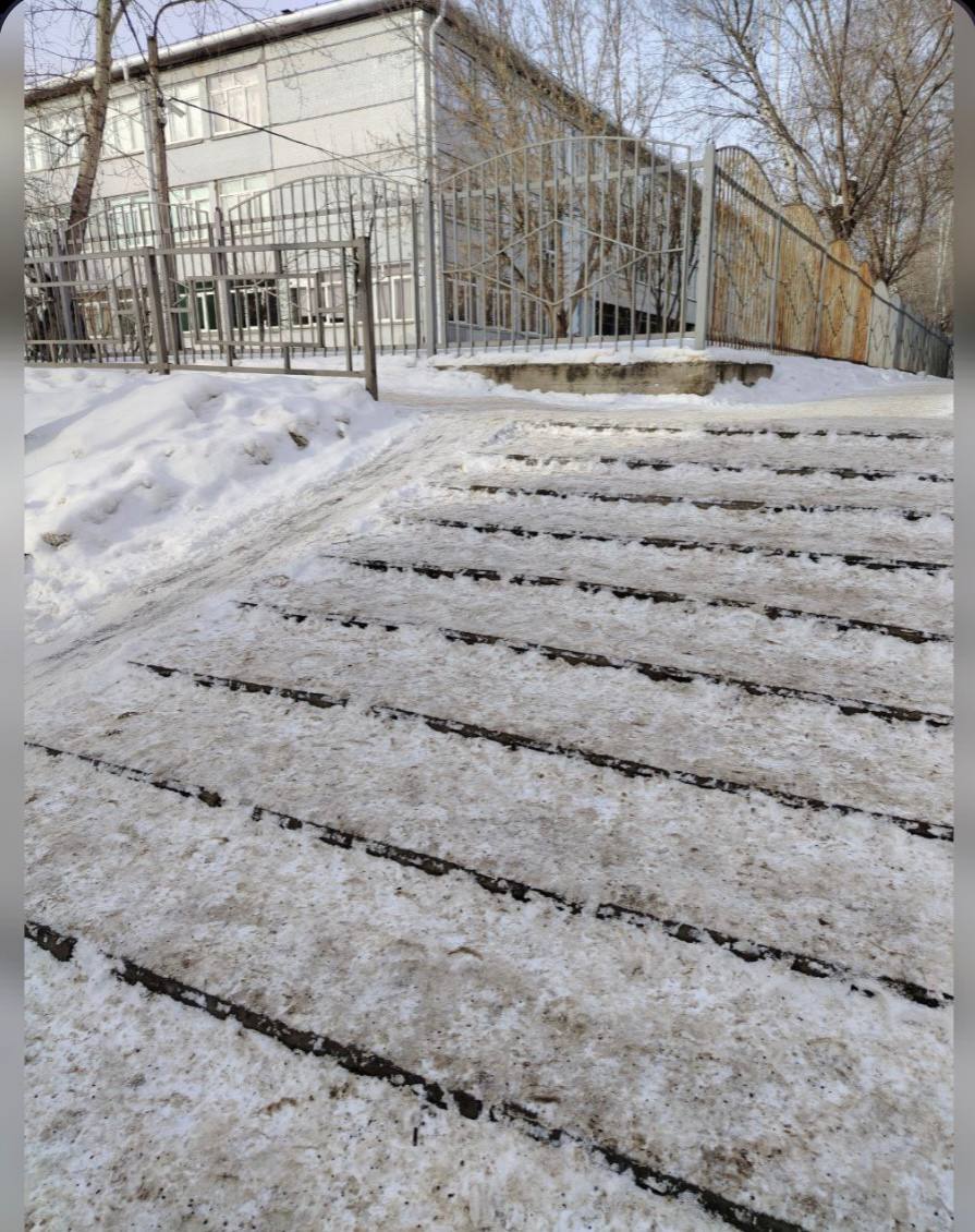 Ранее местные жители пожаловались, что из-за снега ступени превратились в скользкую горку, по которой детям было опасно добираться в школу.