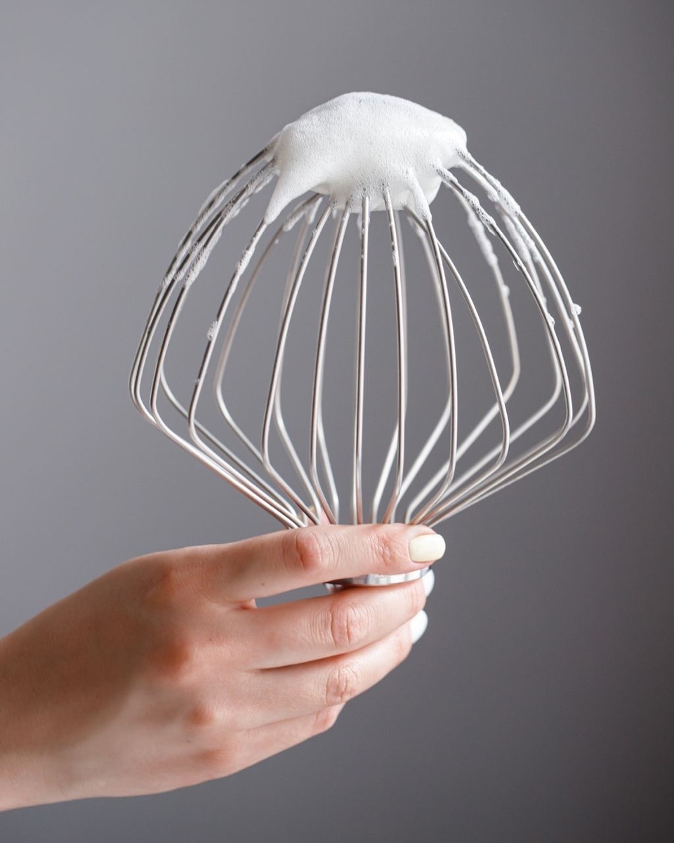 Меренга — основа многих десертов, включая бисквиты и муссы, придающая легкость и воздушность. В классических рецептах белки обычно взбиваются с сахаром, что обеспечивает устойчивую текстуру и предотвращает опадание массы. В процессе взбивания белок, в основном состоящий из воды и протеинов, насыщается воздухом, образуя легкое облачко.