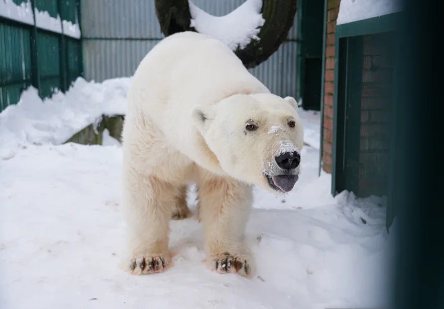 Напавшая на рыбаков белая медведица с Таймыра обживается в Московском зоопарке
