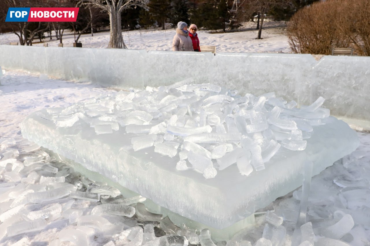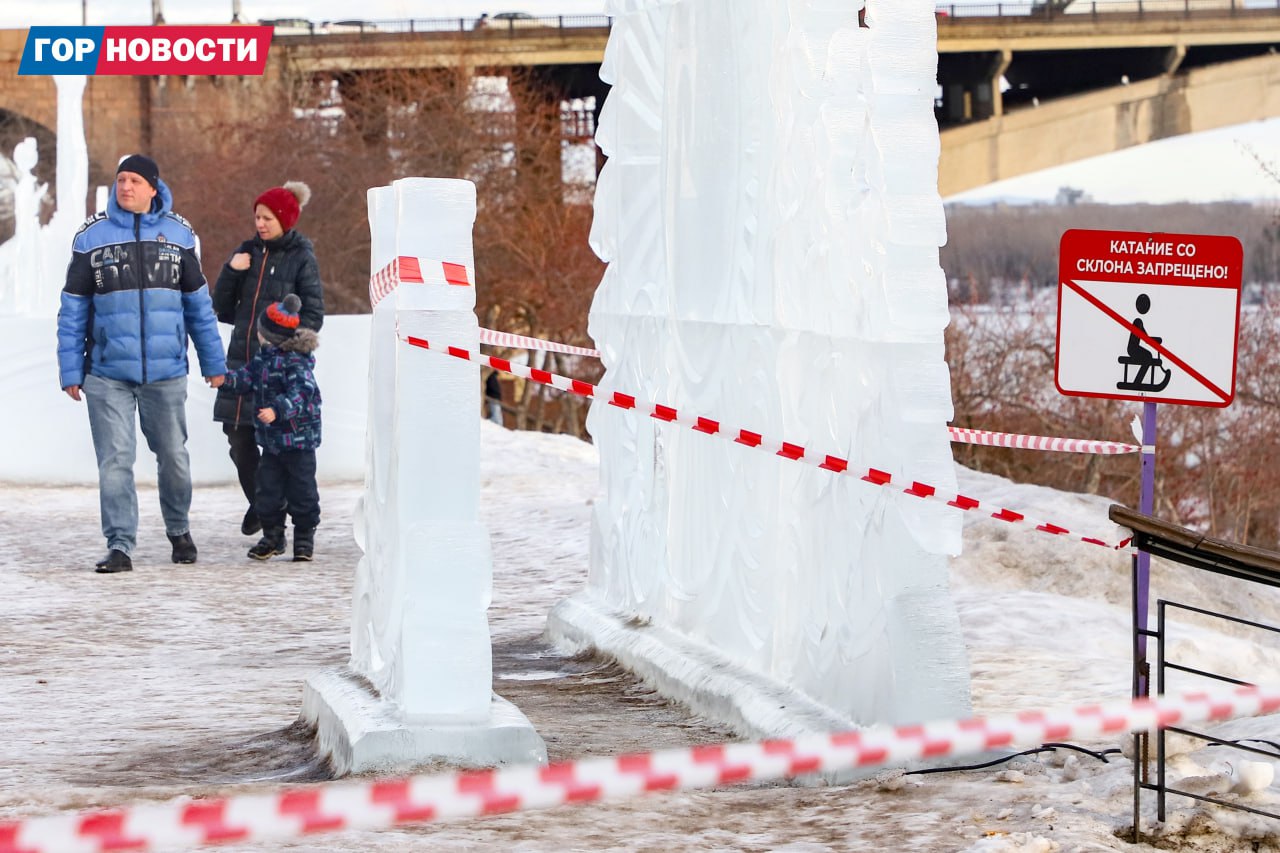 Резкое потепление внесло свои коррективы: композиции «Волшебного льда Сибири» тают. Специалисты осмотрели и приняли решение их убрать.