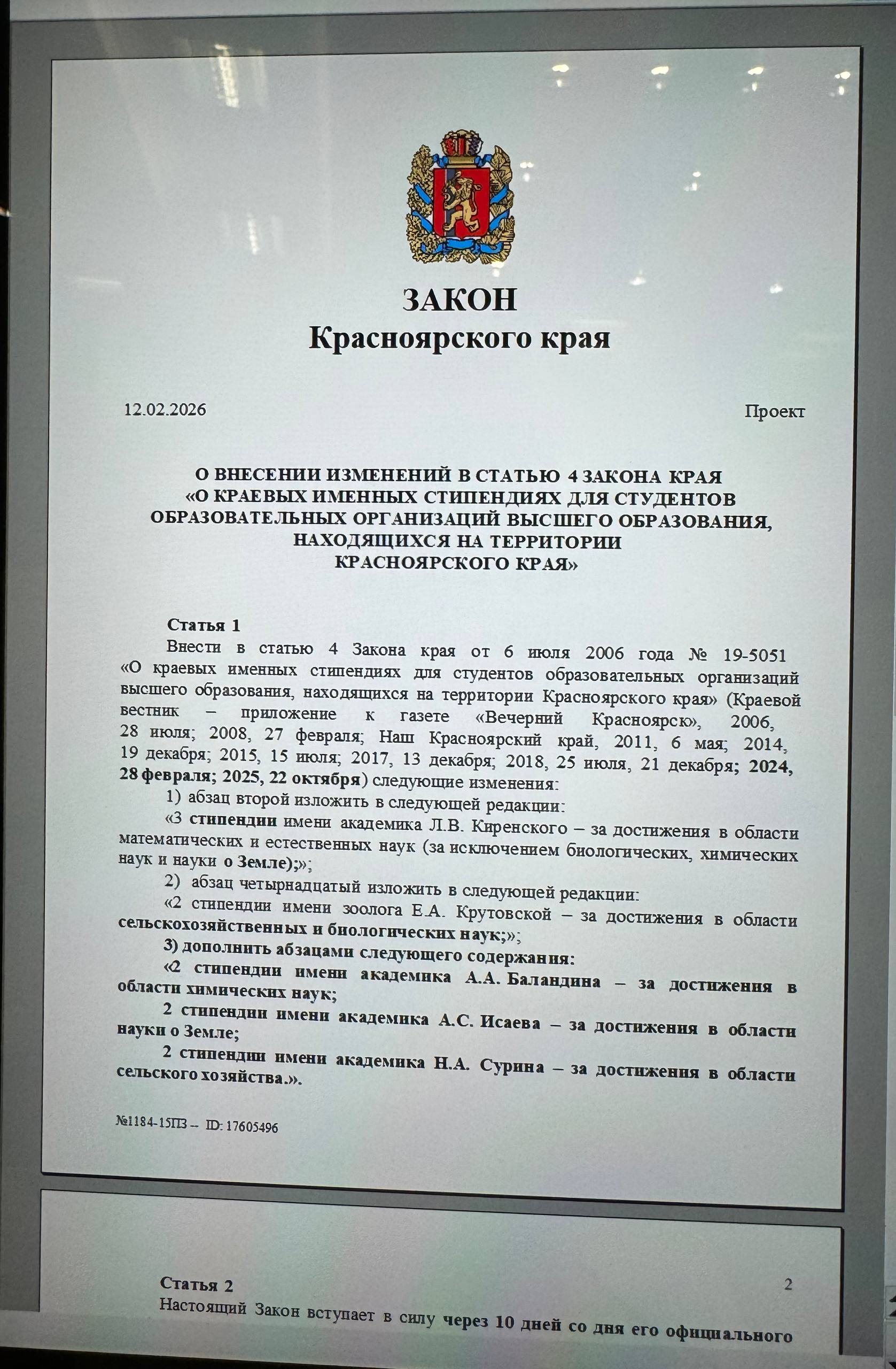 У студентов, занимающихся исследованиями в этих областях наук, появляется возможность участвовать в краевом конкурсе и претендовать на получение соответствующей именной стипендии.