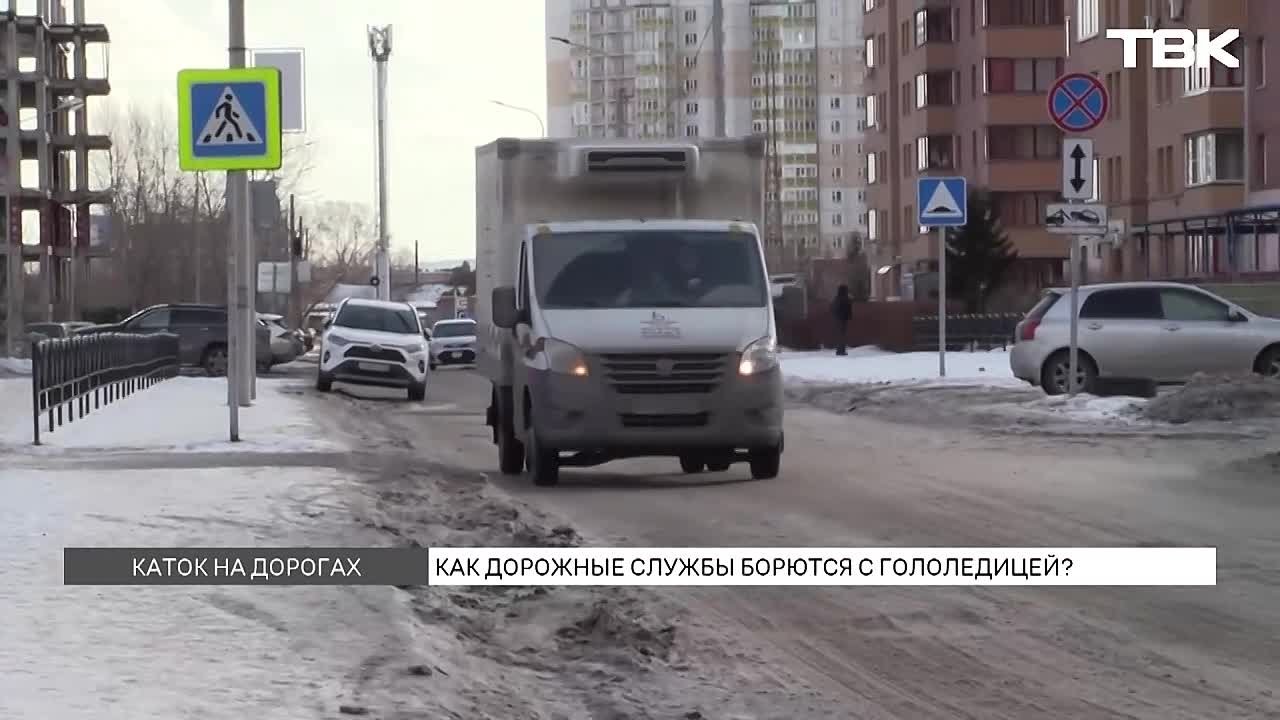 Тротуары и некоторые участки проезжей части в Красноярске превратились в каток из-за перепада температур. Накануне снег растаял и превратился в лужи и слякоть, за ночь все замерзло, и образовалась наледь.