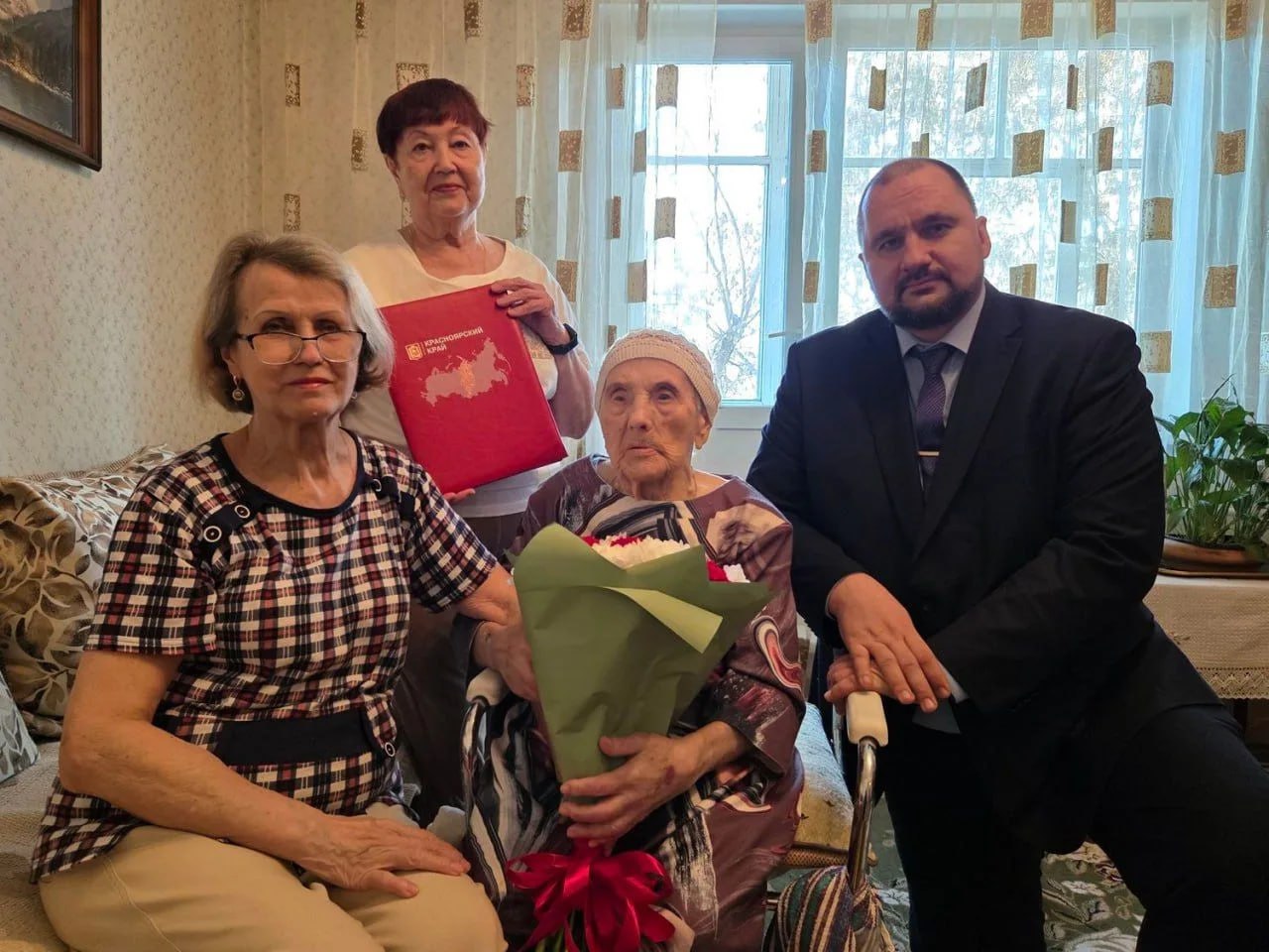 А в 2020 году переехала в Красноярск к племяннице. В юбилей именинницу навестили представители администрации, пожелали здоровья и вручили поздравление от губернатора.