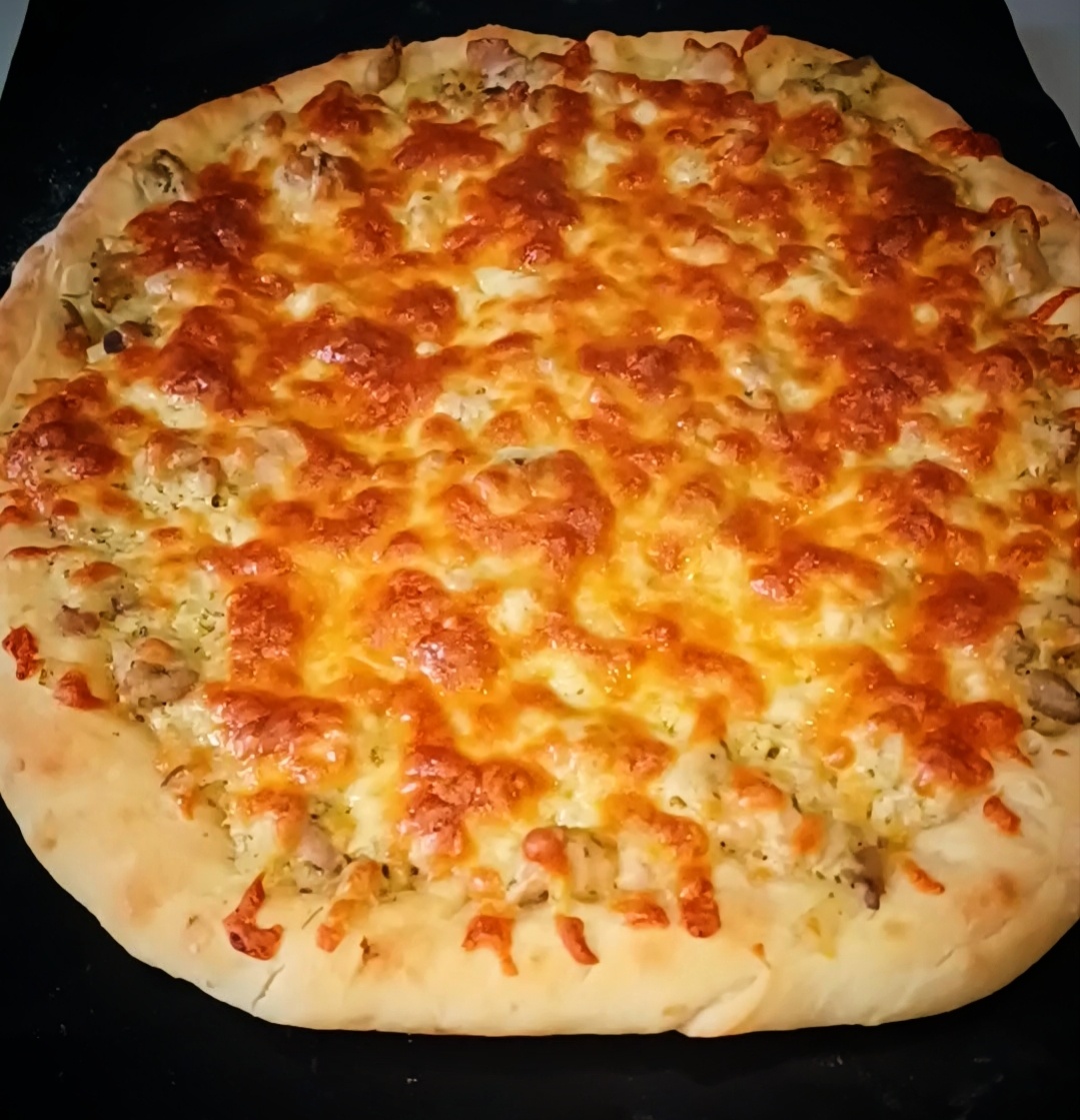 На рабочую поверхность посыпаем мукой и раскатываем тесто в тонкий круг. Затем переносим его на противень, выложенный пергаментом или антипригарным ковриком. Начинку равномерно распределяем по тесту, а сверху щедро посыпаем тертым сыром, чтобы добиться аппетитной корочки.