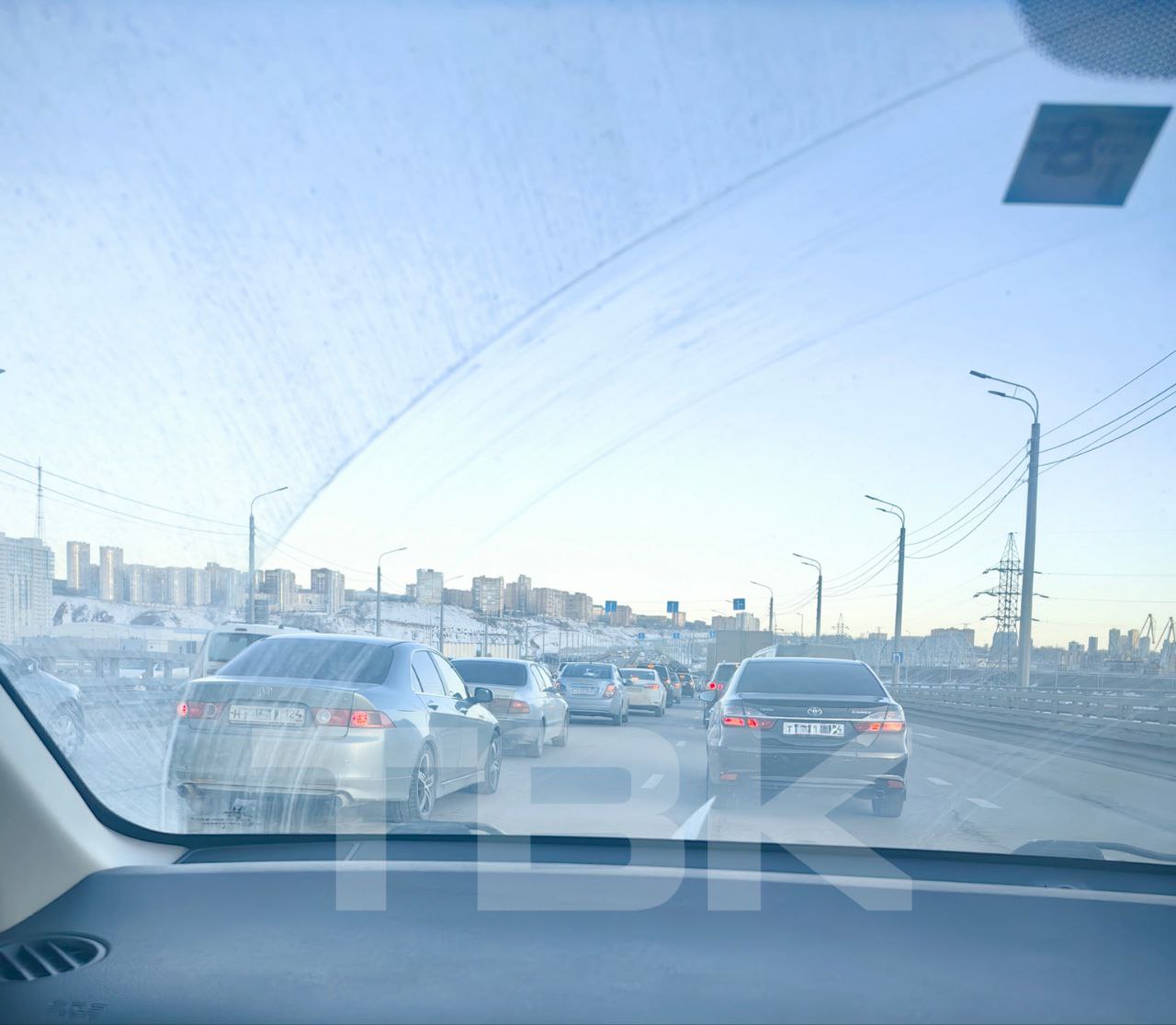 Стоят до середины моста. Судя по карте – плотно и на Коммунальном.