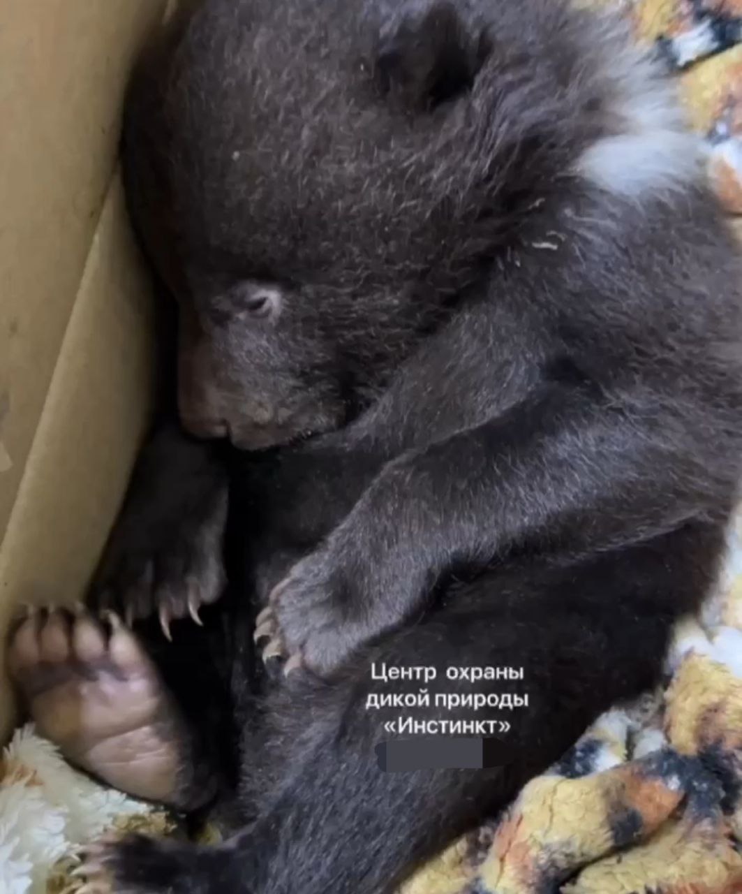 В красноярский центр охраны дикой природы «Инстинкт» доставили месячного медвежонка-самца. Малыш лишился мамы на лесоповале в селе Пировское: на берлогу упало дерево и медведица в панике выскочила, задавив двух детенышей. Один выжил.