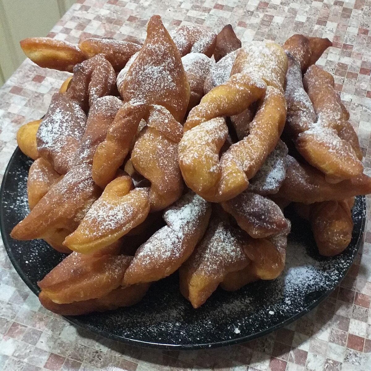 - Загните концы прямоугольников, придавая им характерную форму хвороста. Затем жарьте на сковороде до золотистой корочки!