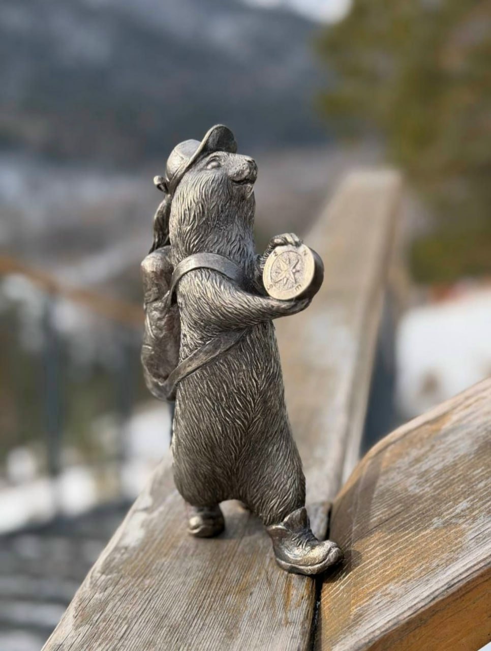 В Красноярске появилась бронзовая скульптура суслика в образе походницы с таким именем. Фигурку установили 21 февраля на лестнице, ведущей на Торгашинский хребет.