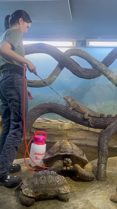 В парке флоры и фауны «Роев ручей» животным время от времени устраивают самый настоящий душ.