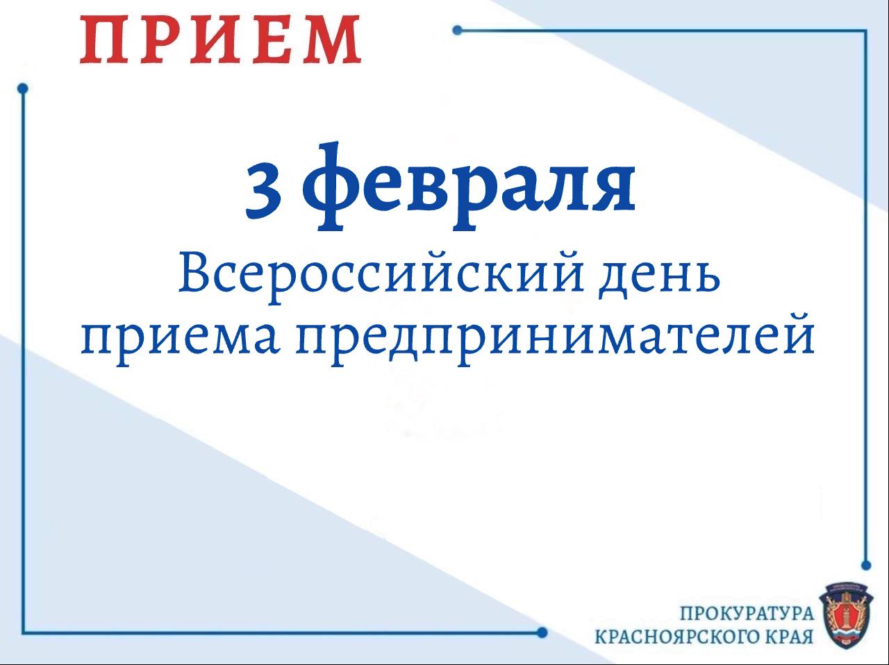 Прокурор Красноярского края Роман Тютюник совместно с Уполномоченным по защите прав предпринимателей Ольгой Загитовой 03 марта 2026 г. проведут Всероссийский день приема предпринимателей