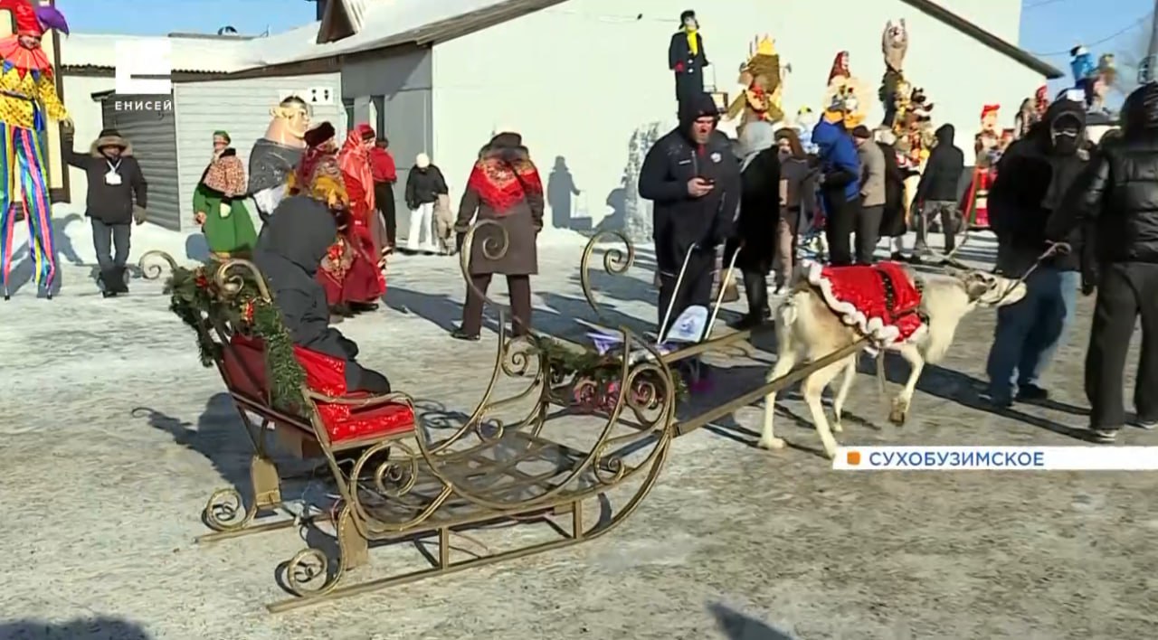 22 февраля на масленичных гуляниях в Сухобузимском животное катало гостей праздника на санях. Олень выглядел изможденным, с трудом двигался, а двое мужчин тащили его за рога.