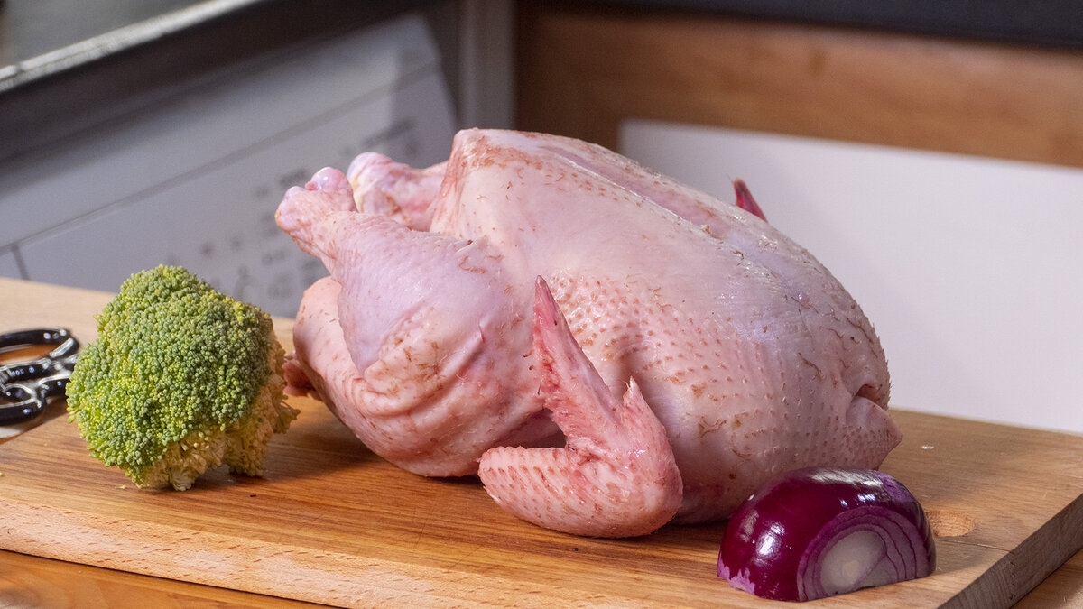 Для начала важно подготовить цыпленка. Опалите его газовой горелкой, удалите семенную часть, а затем разрежьте на две половины. Разложите их на противень, застеленный пергаментом, и приправьте солью и перцем.