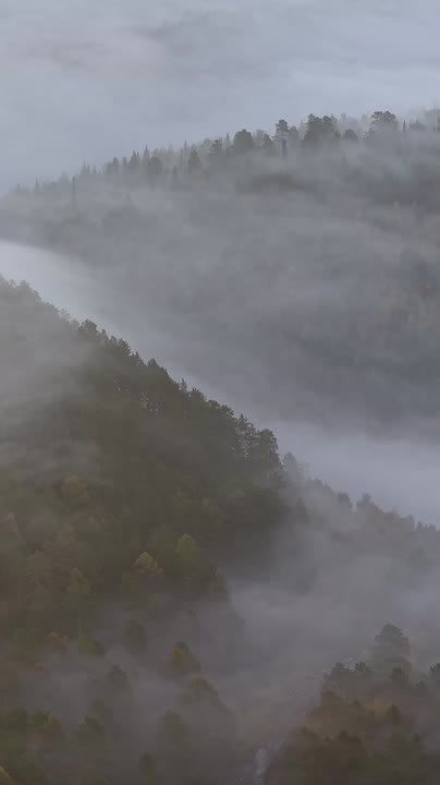 Красота сибирской осени и густой туман над Енисеем, Красноярский край