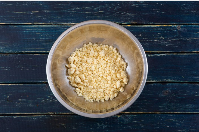 Разогрейте духовку до 200°C. В глубокой миске поместите холодное сливочное масло и добавьте половину сахара. С помощью вилки тщательно перемешайте смесь, затем добавьте просеянную пшеничную муку и перемешайте до получения крошкообразной структуры, пишет Дзен-канал "Еда от ШефМаркет".