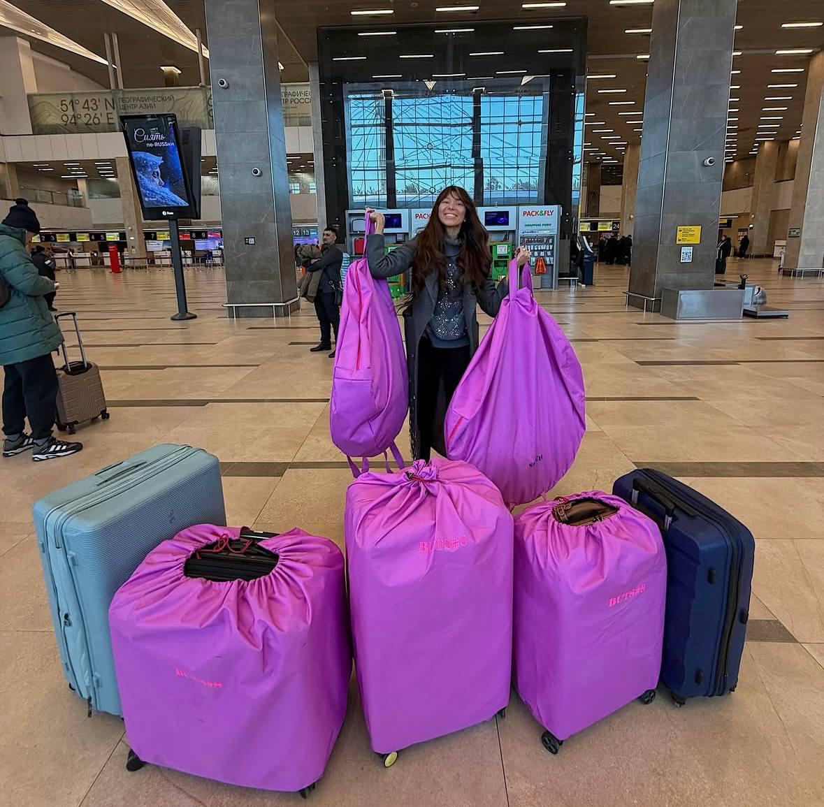 Основательница бренда BUTS№8 улетела во Францию, чтобы представить свою коллекцию. С собой Вера взяла 30 образов – они разместились в 5 чемоданах, вес которых 100 кг.