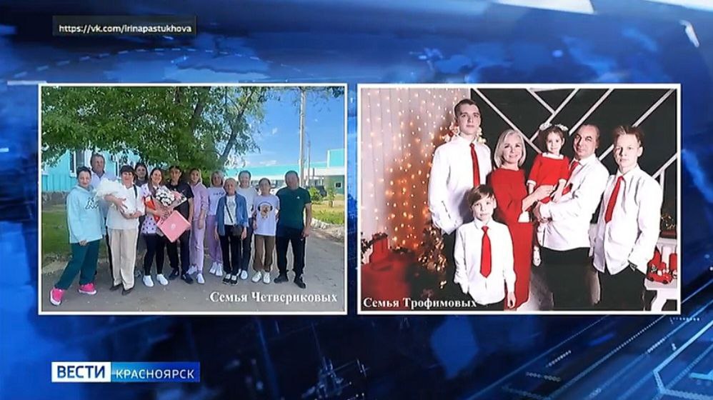 У Ольги и Ивана Четвериковых из села Малая Минуса Минусинского муниципального округа пятеро детей – две дочери и трое сыновей. Глава семьи — машинист бульдозера, а мама работает в детском саду. Ирина и Николай Трофимовы из Козульки воспитывают четверых детей. Отец работает на Кемчугской нефтеперекачивающей станции, мама — медсестрой дома социального обслуживания «Козульский».