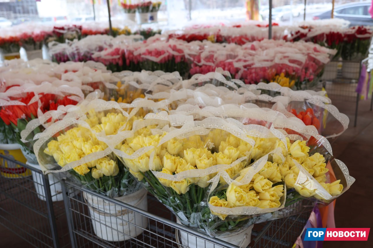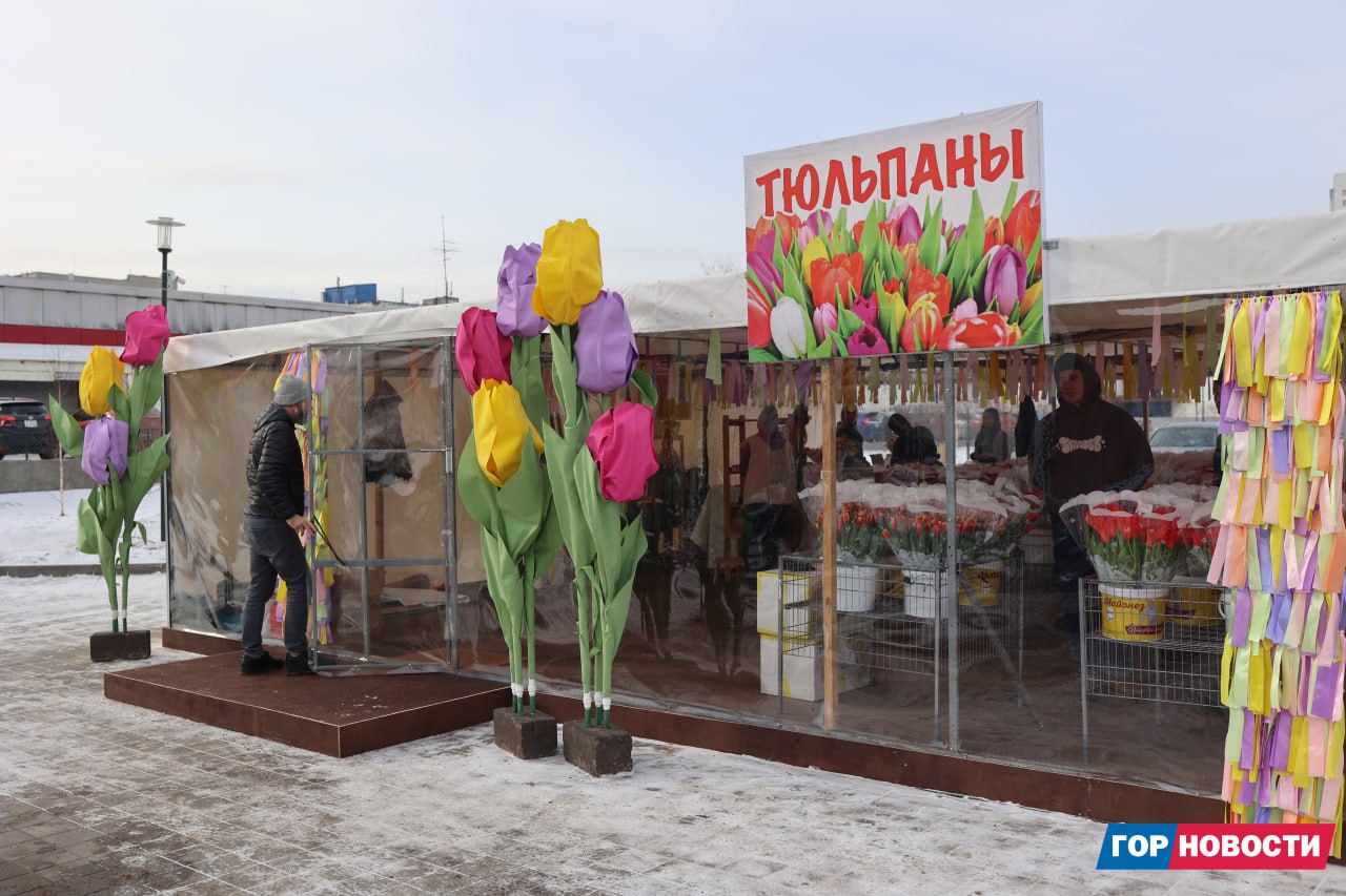 Среди белого снега в городе уже появились яркие островки — точки продажи тюльпанов. До 8 Марта осталось всего ничего, и цветы напоминают: весна уже пришла, даже если за окном пока минус.