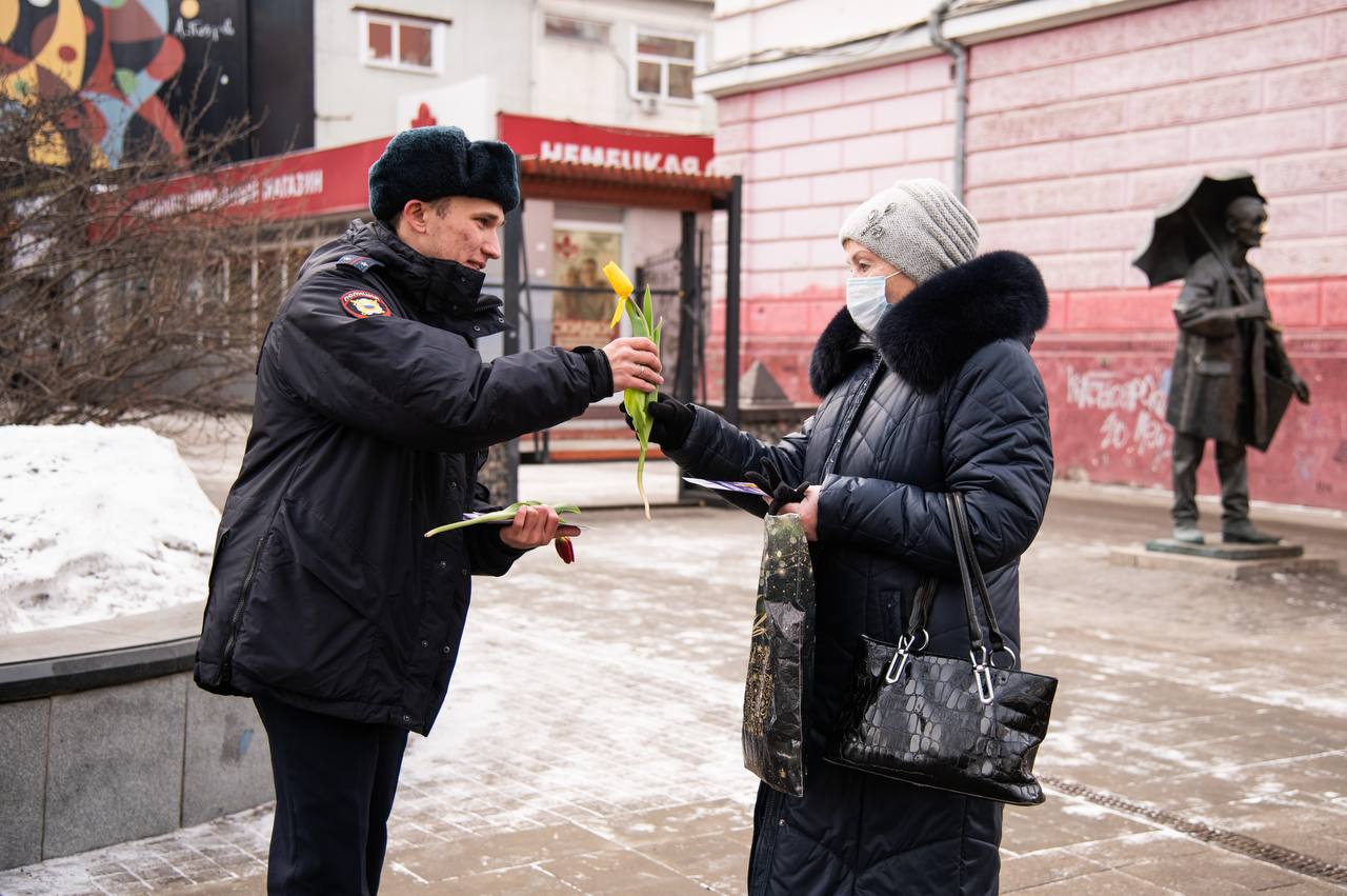 Приближается самый весенний женский праздник. Участковые и общественники решили совместить приятное с полезным: рассказать о схемах мошенников и поздравить женщин с наступающим 8 марта.
