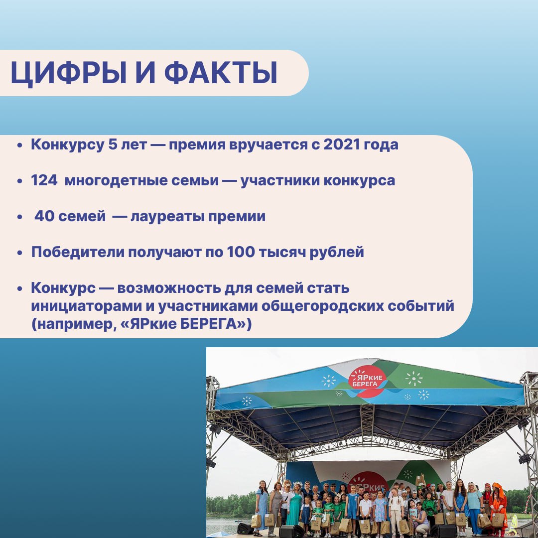 Сколько многодетных семей участвовало в конкурсе за пять лет?