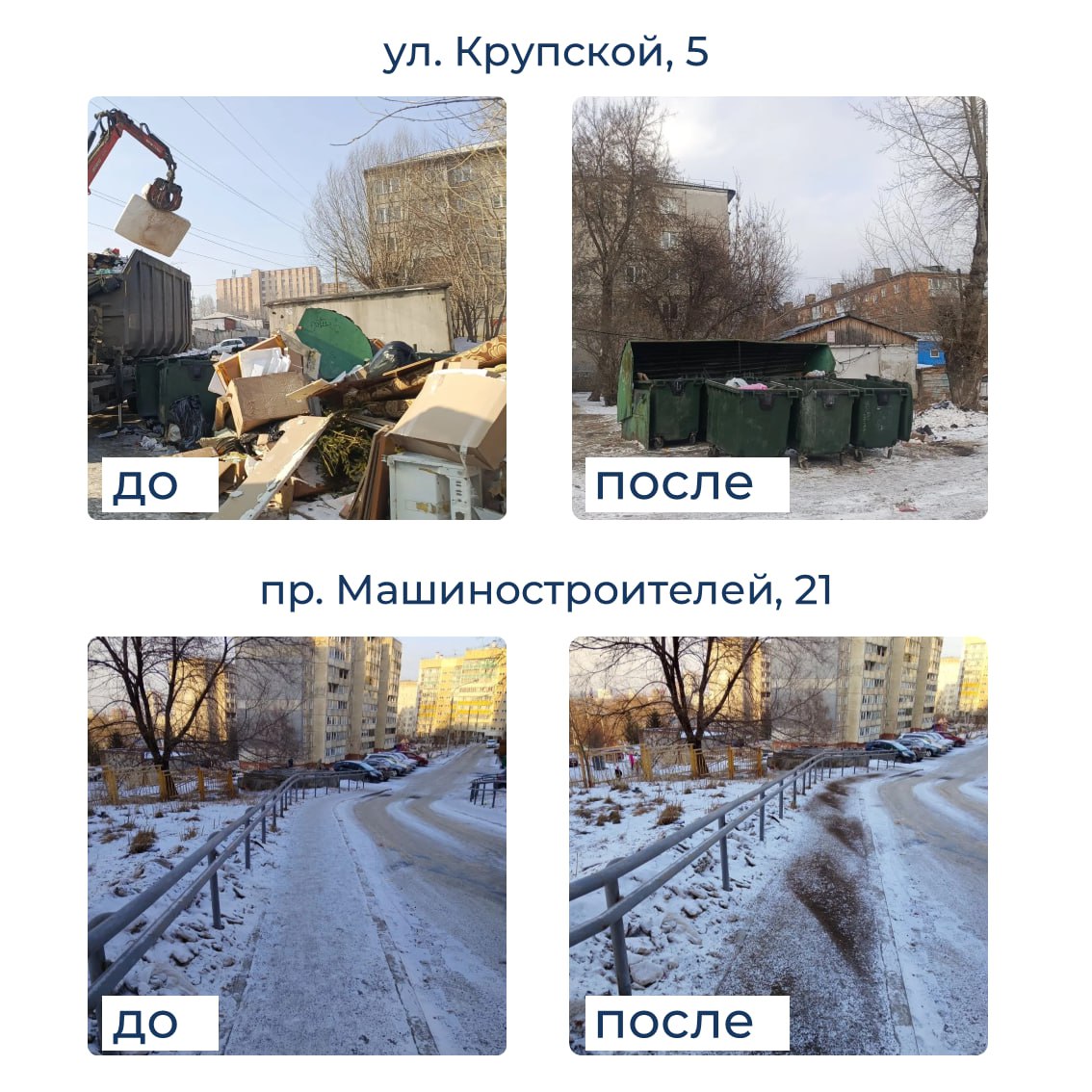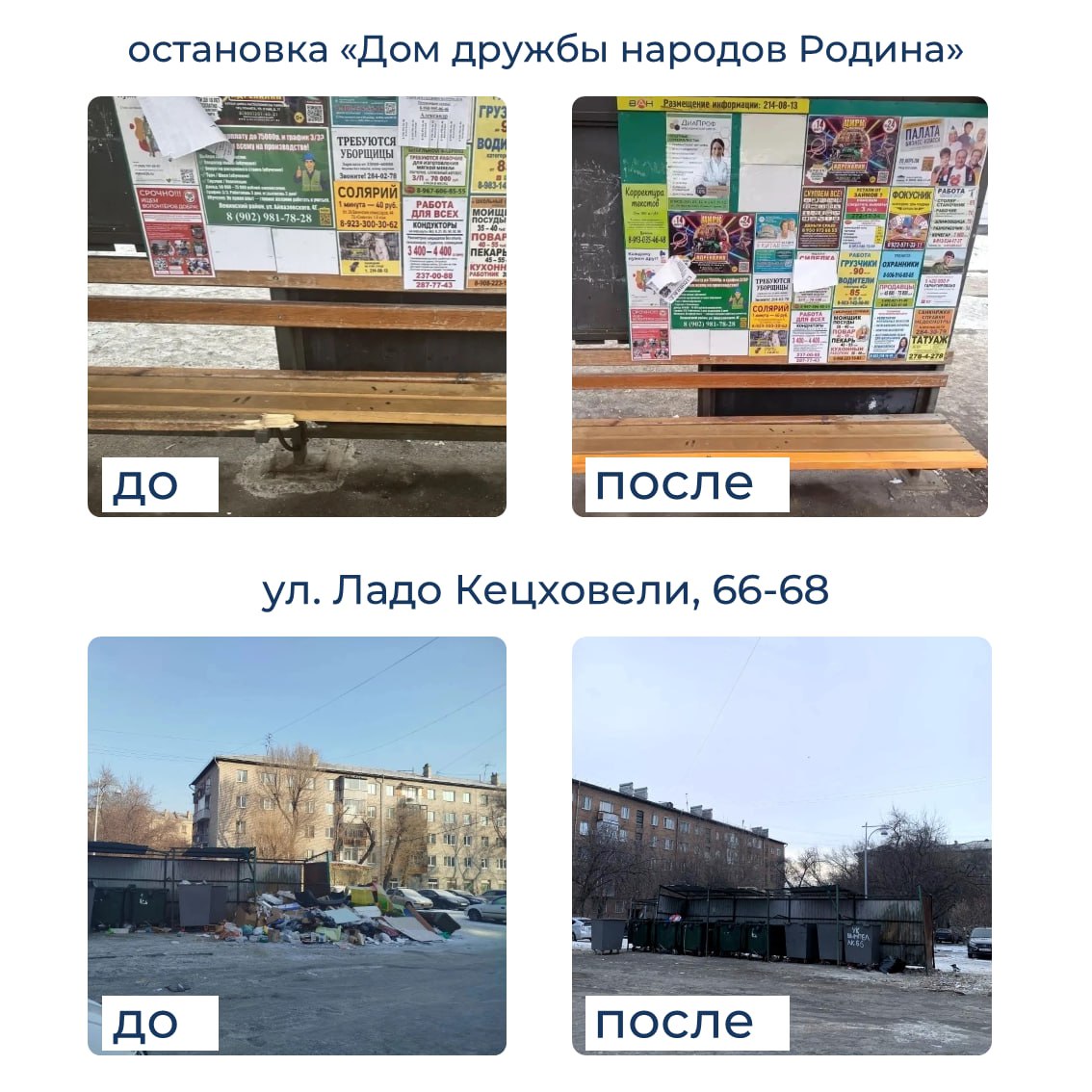 Также реагируем на сигналы о состоянии площадок ТКО: убрали мусор на ул. Ладо Кецховели, 66-68 и вывезли свалку возле дома №5 по ул. Крупской.