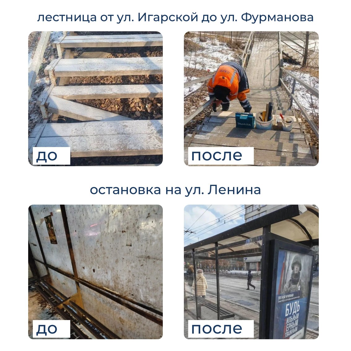 Жители Покровки сообщили о проблеме с лестницей от ул. Игарской до ул. Фурманова. Одна из деревянных ступеней пришла в негодность. Рабочие оперативно заменили её на новую, а также очистили спуск от снега и наледи.