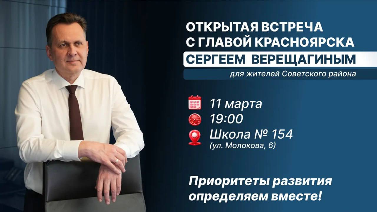 Глава Красноярска Сергей Верещагин 11 марта проведет открытую встречу с жителями Советского района.