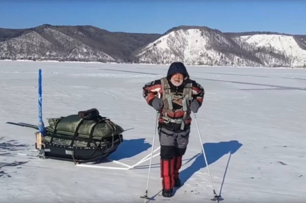 «По грудь в ледяной воде». Пенсионер в третий раз штурмует Байкал пешком