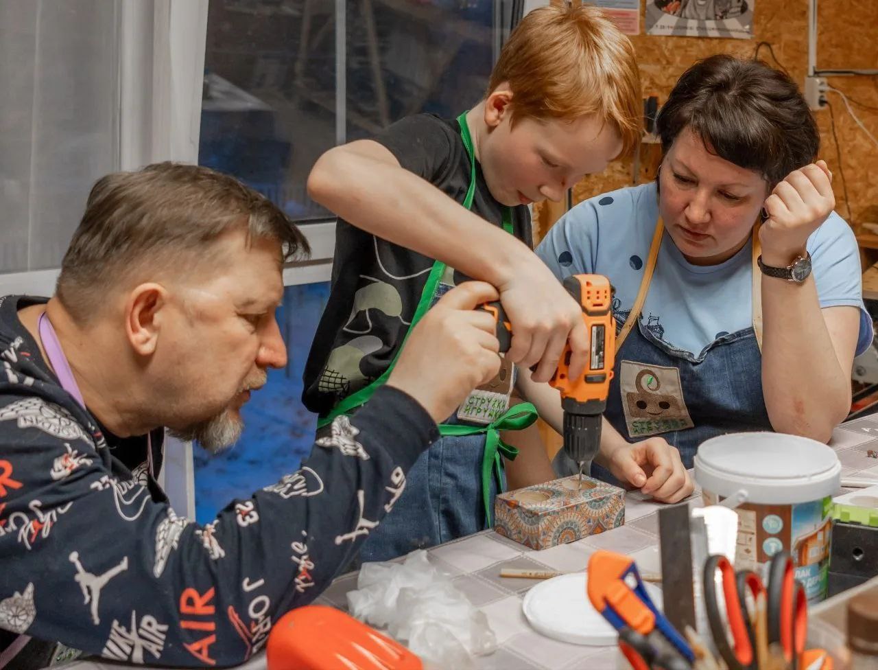 Поселок Кедровый: В столярной мастерской «Стружки-игрушки» юные участники клуба «Мастерята», созданного при поддержке Фонда президентских грантов, вместе со своими мамами мастерили деревянные подсвечники.