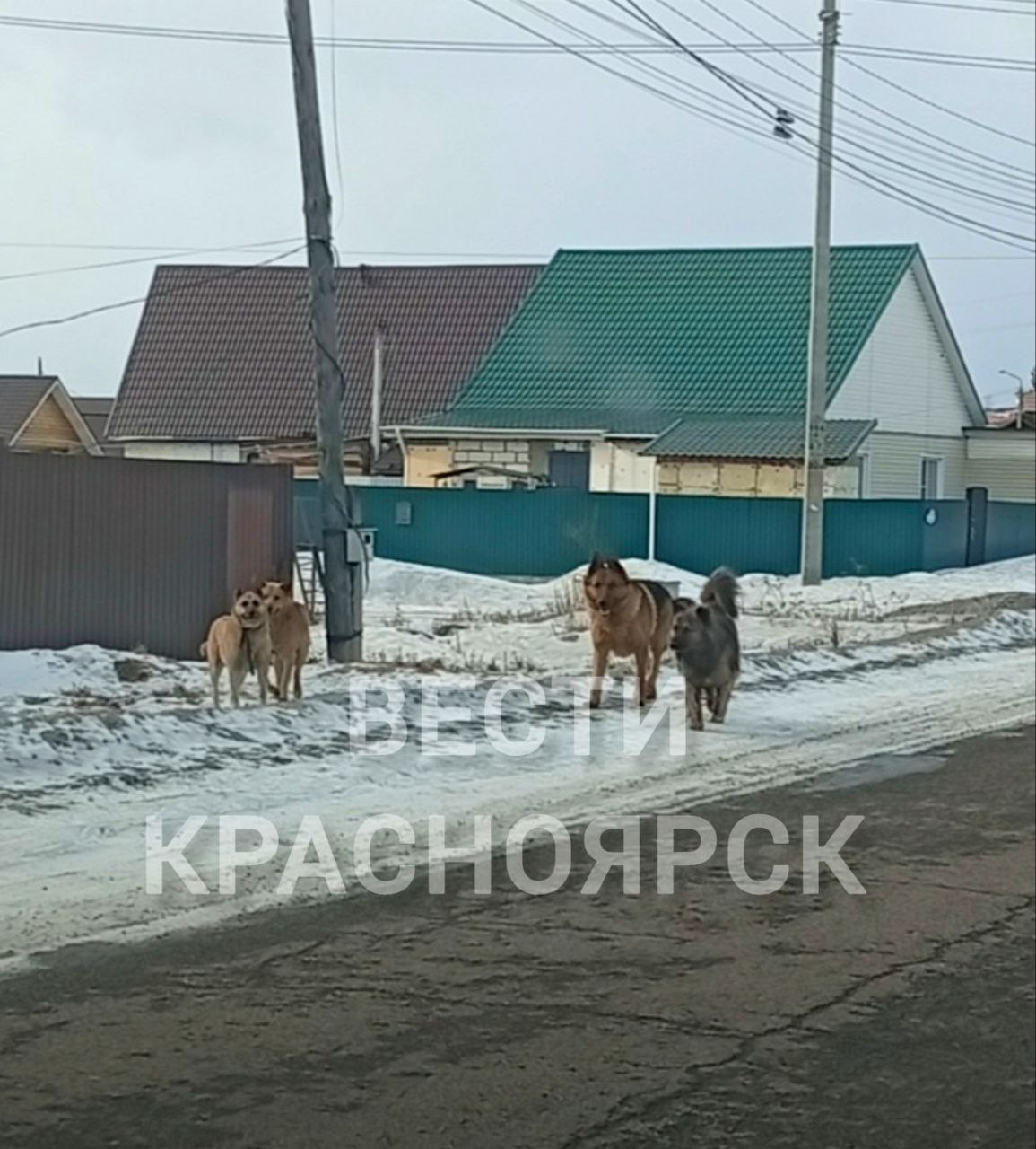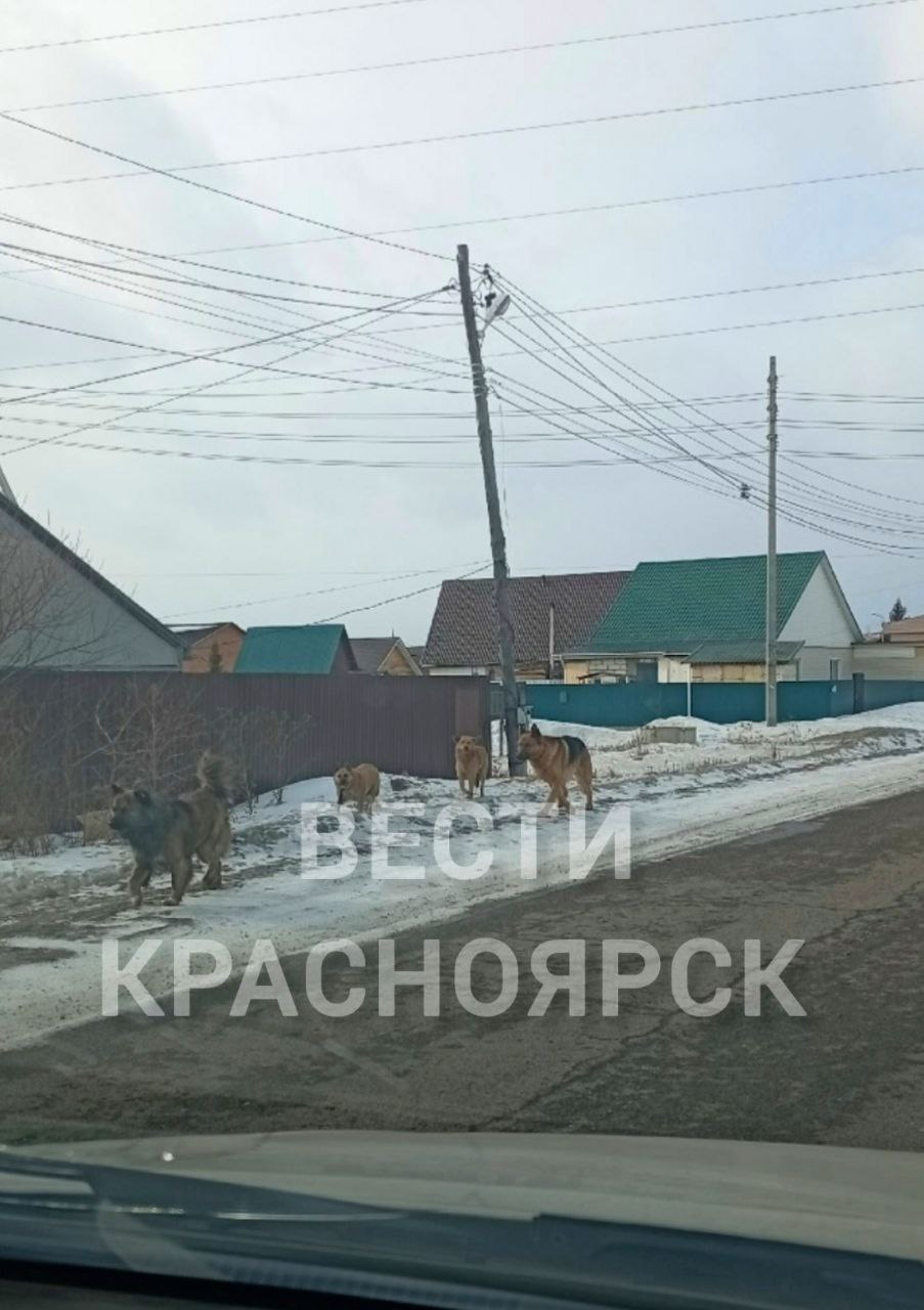 «По улице Элитной, Степной бегают огромные собаки. Одна из них с ошейником — кто-то выпускает на самовыгул, чего делать запрещенно. Она кидается на машины, а что говорить о людях... Дети каждый день ходят на остановку в школу со страхом встретиться с данной компанией собак. Звонили в 112, там приняли заявку, а толку... Прошло две недели, всё эти собаки как хозяйничали на улице так хозяйничают. Ну неужели нужно чтобы с начала эти собаки кого нибудь загрызли» — рассказывает автор фото #подписчик_ВестиКрасноярск