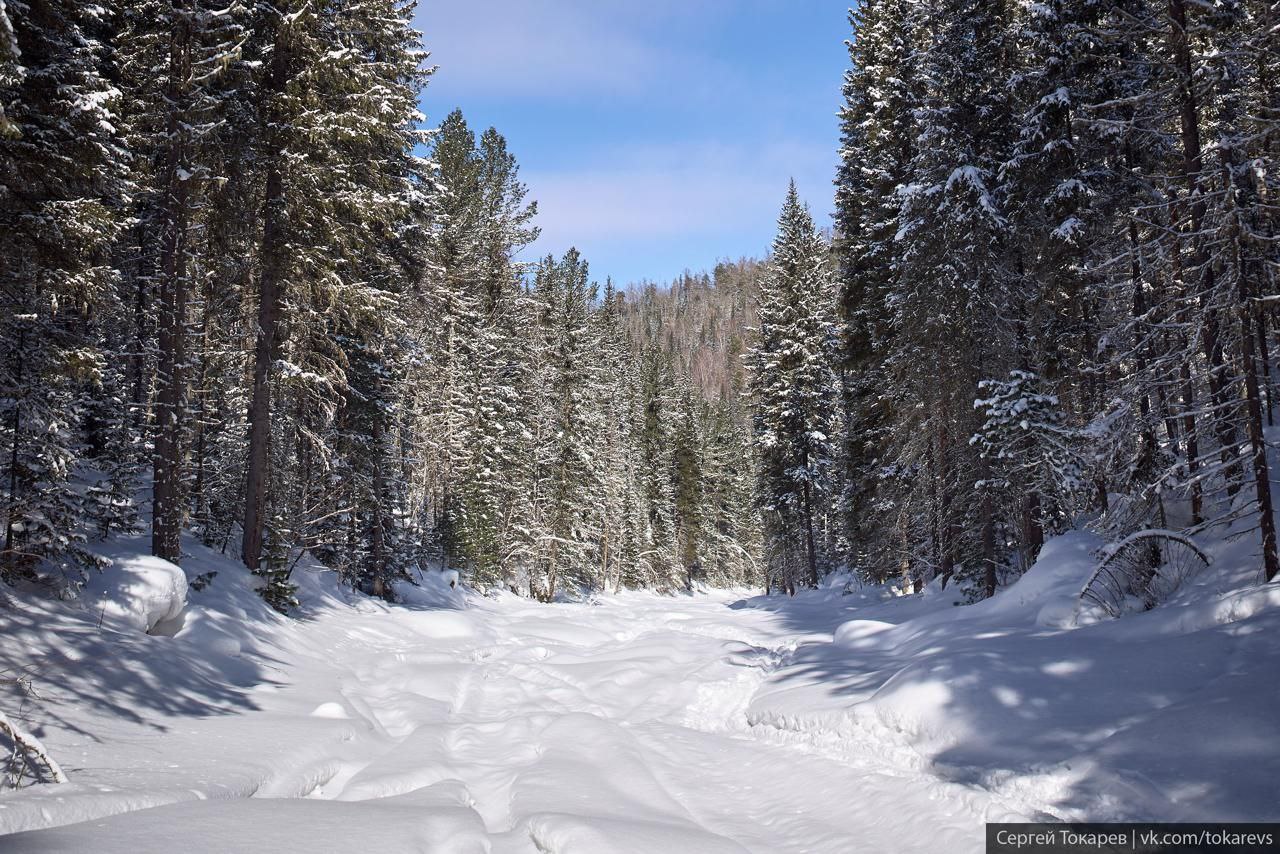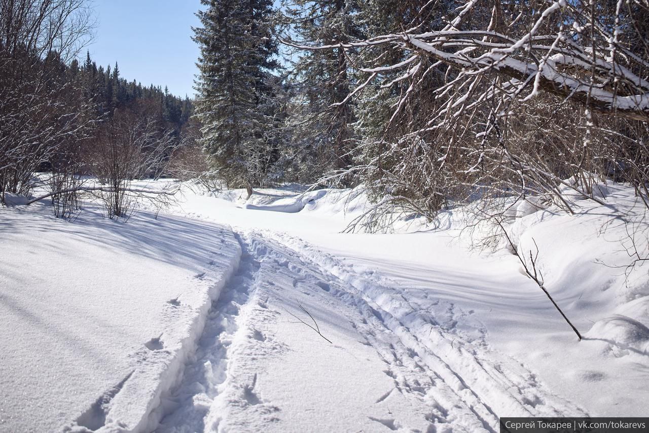 Вся прогулка заняла 7.5 часов, так как шел на сплитборде. На беговых лыжах путь займет 4-5 часов.