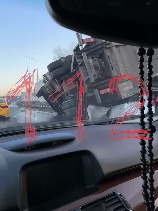 Несколько автомобилей столкнулись на Люблинской улице. В результате столкновения грузовик перевернулся и опрокинулся на одну из машин.