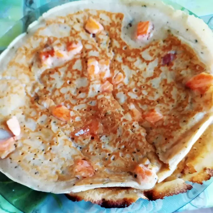 После приготовления домашнего творога остаётся молочная сыворотка. Её можно использовать не только для выпечки, но и в окрошке. Для блинов из гречневой и цельнозерновой муки, которые менее эластичные, чем пшеничные, лучше сделать их чуть толще.