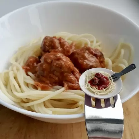 Например, одна из первых работ, представленная в проекте, изображает спагетти с фрикадельками в соусе. Это блюдо появилось в 2018 году и стало вдохновением для создания миниатюры, где каждая деталь тщательно проработана.