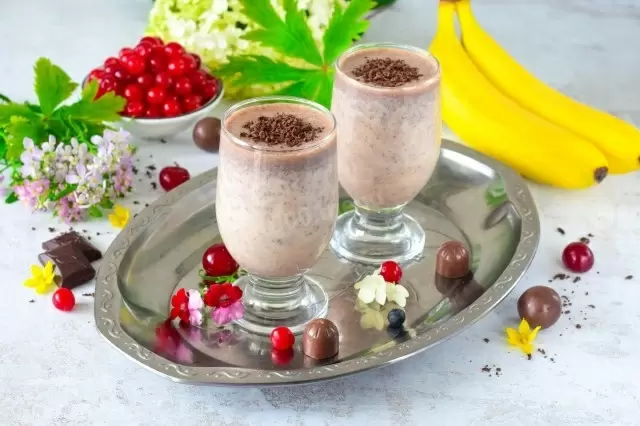 Шаг 7: Разлейте готовый шоколадно-банановый смузи по стаканам и подайте к столу. Наслаждайтесь!
