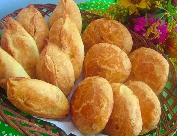 Тесто разделить на небольшие порции — обычно выходит около 17 штук. Каждый кусочек раскатать в лепешку толщиной 4-5 мм, затем в центр положить начинку. Поднять края и защипнуть, формируя пирожок.