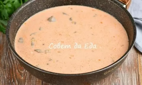 Когда печень будет готова, в отдельной миске смешать 50 г томатной пасты, 100 г сметаны и 1 столовую ложку муки. Влить 400 мл воды и хорошо перемешать.