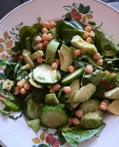 Салат «Свежий» не только радует глаз и вкус, но и полезен. Огурцы насыщены влагой, нут богат белком, а авокадо приносит полезные жиры и полноту вкуса. Это отличный выбор для разнообразия повседневного рациона. Пробуйте, не пожалеете — весенний салат станет настоящим украшением вашего стола!