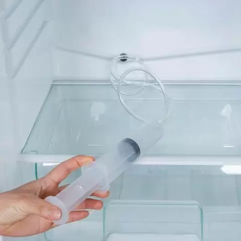 Если в вашем холодильнике под ящиками для овощей начинает скапливаться вода или на задней стенке образуется наледь, не стоит паниковать. Это распространенная проблема, свидетельствующая о засорении дренажного отверстия. Вместо обращения в сервисный центр, решить эту проблему можно самостоятельно всего за 10 минут, используя медицинский шприц и теплую воду.