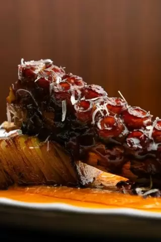 Северные мотивы и простые техники — вот что объединяет эти блюда: осьминог с картофельным гратеном и томатным соусом передает нежность морской эссенции вместе с лёгкой сладостью печёных томатов; угоpь на гратене с икрой подаётся как чистый и насыщенный вкус деликатеса, характер которого ощущается в каждом кусочке; голубец с крабом и икрой — тонкая нота русской кулинарной памяти, переосмысленная и лёгкая.
