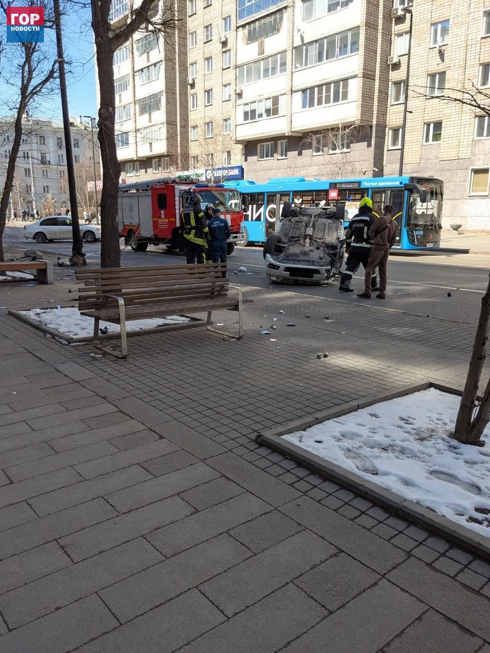 На остановке Робеспьера в Красноярске перевернулся автомобиль. В настоящее время на месте работают сотрудники ГИБДД и пожарные. Полицейские выясняют все обстоятельства произошедшего.