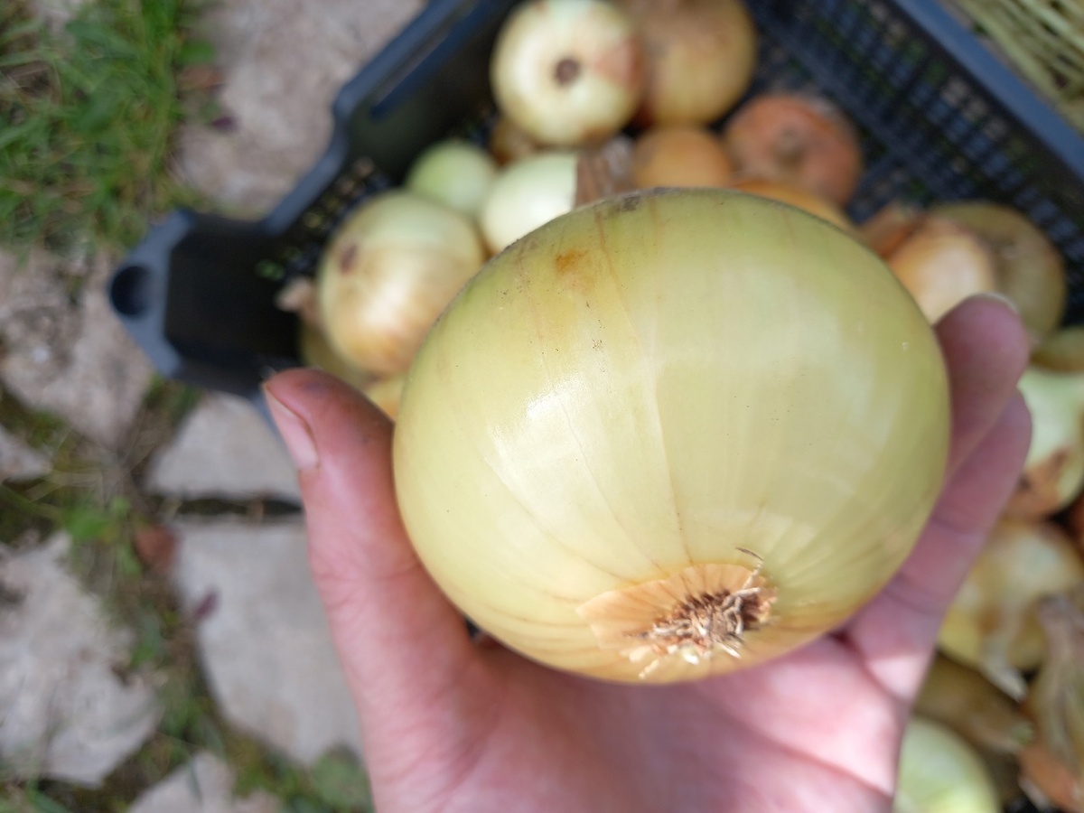 Сейчас лук-севок, собранный с гряд, активно подготавливается к хранению. После обрезки стеблей он укладывается в ящики для сушки, чтобы зимой радовать домочадцев своим присутствием в нижнем ящике холодильника. Удачный урожай лука – это всегда повод для гордости, и в этом году сбор составил целых три ведра.