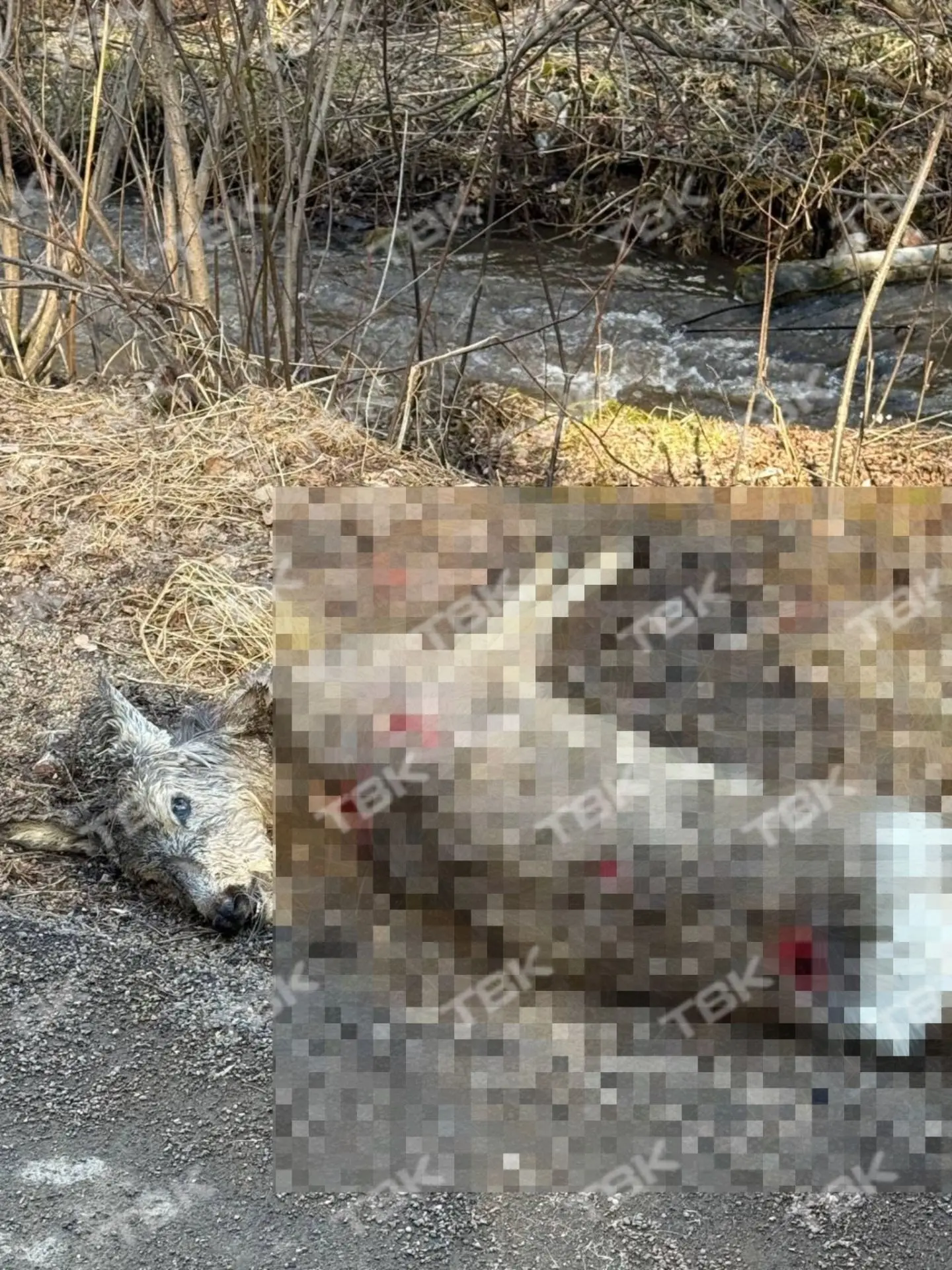 «К сожалению городские власти пока не приняли никаких мер»: труп косули несколько дней лежит у центрального входа на Столбах