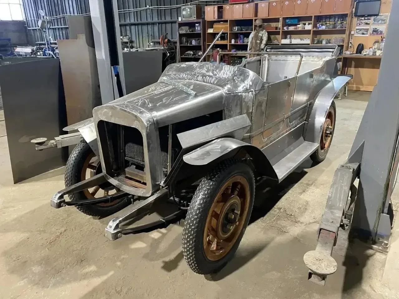 Это будет почти полная копия автомобиля «Руссо-Балт» С24. По чертежам изготовлен металлический корпус, колеса – деревянные с металлическими шинами. Руль справа, коробка передач и тормоз вынесены за корпус. С двигателем решено по-простому: от «Москвича – 403».