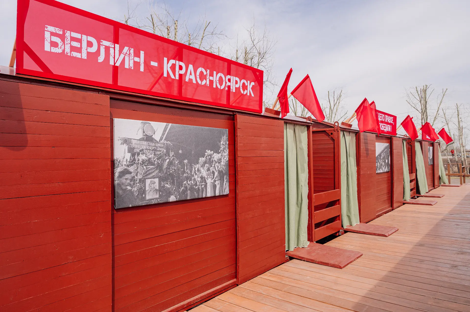 В преддверии Дня Победы на острове Татышев в Красноярске начала работу интерактивная выставка «Вагоны-теплушки».
