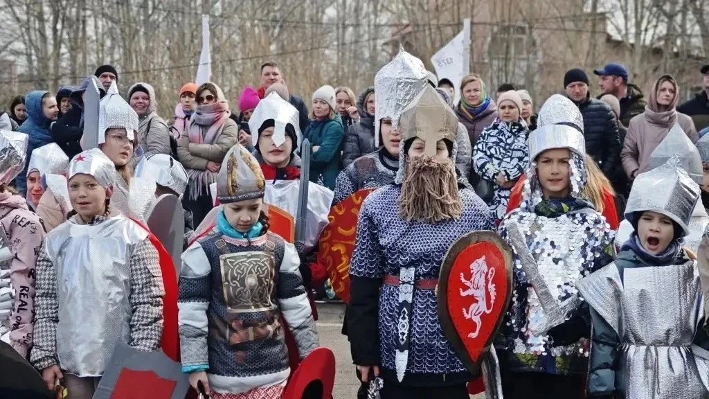 Ученики 1–6 классов лицея №8 и школы №159 перевоплотились в исторических персонажей: монаха-воина Александра Пересвета, ордынского богатыря Кочубея, преподобного Сергия Радонежского, князя Дмитрия Донского и хана Мамая.