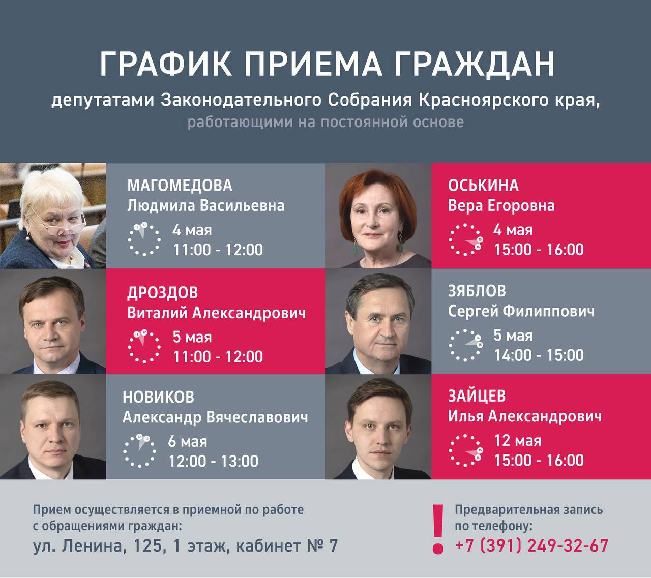 График приема граждан на первую половину мая