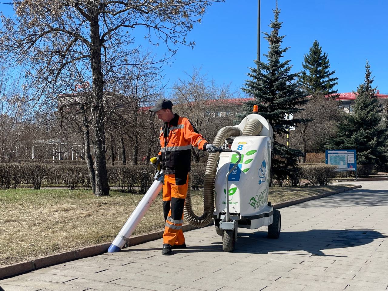 Городские службы приступили к уборке общественных пространств и улично-дорожной сети. С помощью техники рабочие убирают мусор из самых труднодоступных мест: из-под урн, лавочек, клумб и стыков тротуарной плитки.