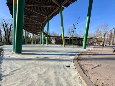 Сейчас там идет капитальный ремонт. Дорожку вдоль территории заменяют на брусчатку вместо старого покрытия. Под световыми качелями «Луна» укладывают новые слои защиты: гео-текстиль и каучуковую крошку для амортизации и безопасности...