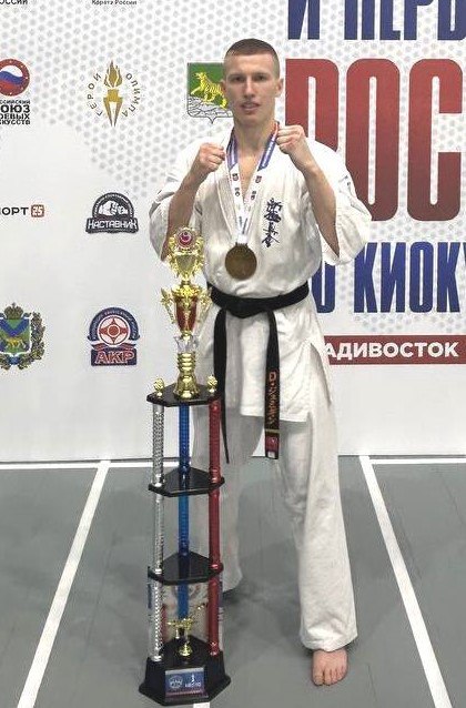 ДМИТРИЙ ЖУМЫГИН – золото чемпионата России по киокусинкай WKO. 16 НОЯБРЯ. Владивосток (Россия). По ходу турнира Дмитрий Жумыгин провел четыре боя. При этом в полуфинале выбил из борьбы за золото чемпиона России-2024 Александра Кирьянова (Воронежская область), а в финале одолел вице-чемпиона-2024 Антона Серкова (Хакасия).
